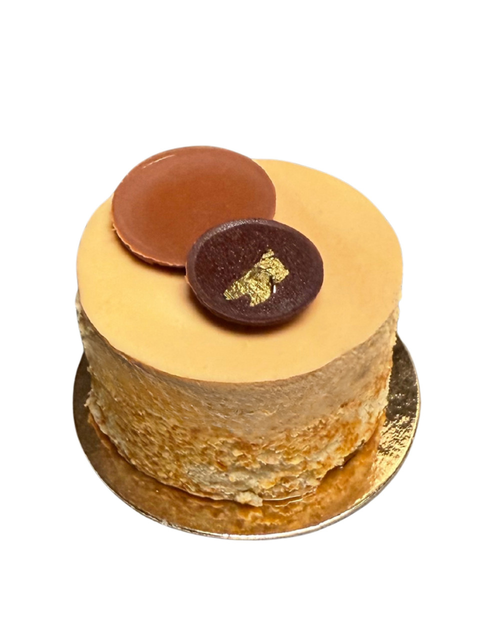 Alliance gourmande d’une mousse onctueuse au spéculoos, d’une compotée de poire fondante, de noix de pécan croquantes et d’un zeste de citron vert rafraîchissant, le tout sublimé par une dacquoise noisette légère et un praliné feuilleté irrésistiblement croustillant.